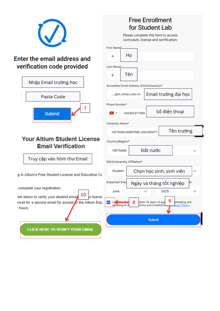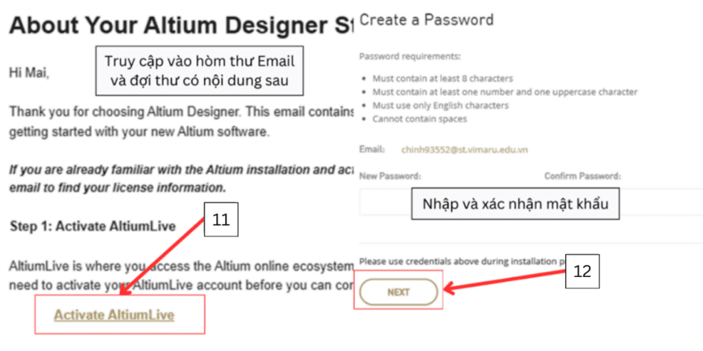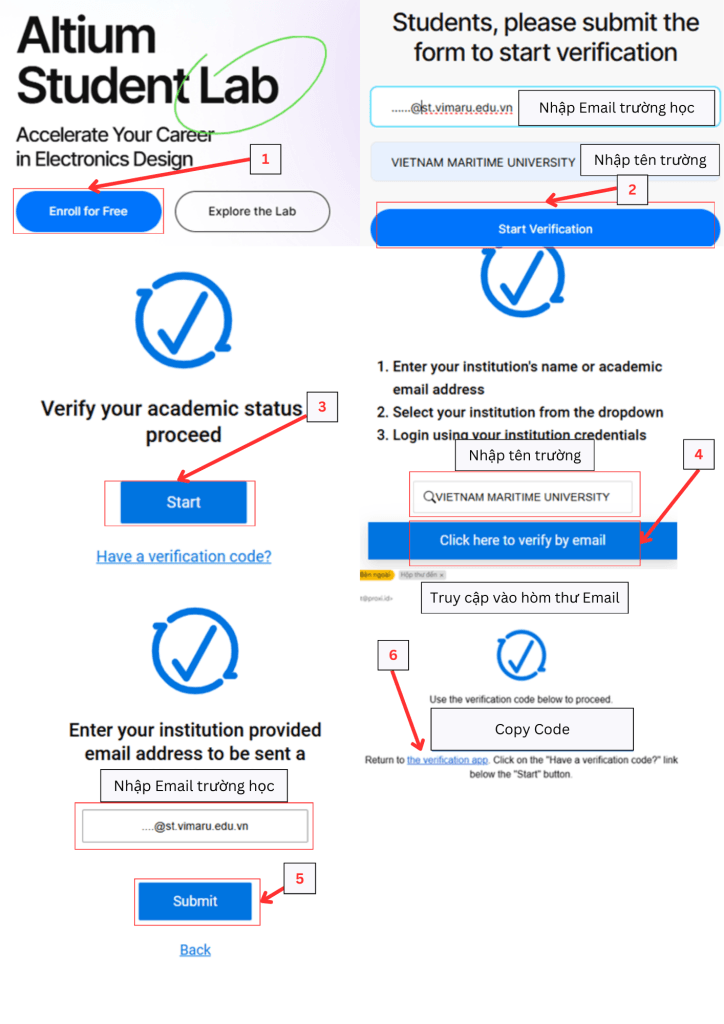 - Hãy thực hiện các thao tác dưới đây theo thứ tự (Bước 1 đến 12) để đăng ký tài khoản Altium dành cho học sinh, sinh viên.