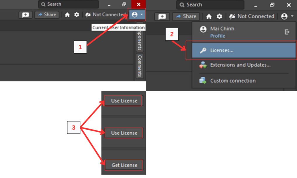 Bạn đã đăng ký xong tài khoản Altium free cho sinh viên. Khi đăng nhập bằng tài khoản này trong Altium lần đầu tiên, hoặc trên các thiết bị khác bạn cần phải sử dụng giấy phép (Use License) như sau: