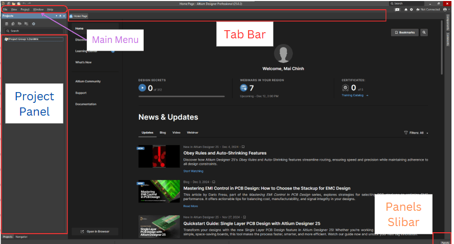 3. Giới thiệu giao diện và tạo project trong Altium Designer
