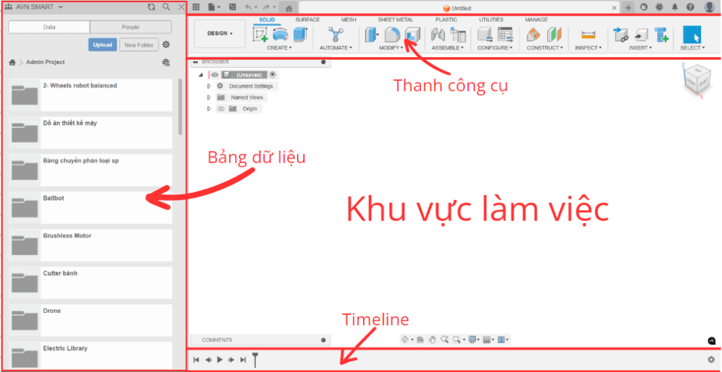 - Tính năng nổi bật: Tính năng Timeline, giúp bạn “tua ngược thời gian” khi chỉnh sửa, dễ dàng quản lý thiết kế, biến mọi sai sót thành chuyện nhỏ. Tính năng quản lý dự án mạnh mẽ, trao đổi, thảo luận với các thành viên trực tiếp trên Fusion 360.