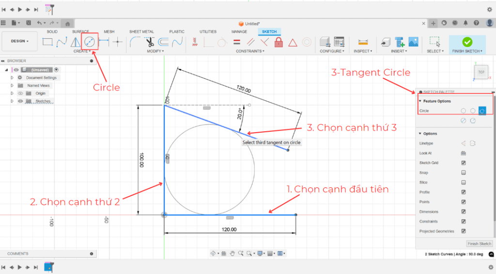 Hình 10: Lệnh vẽ hình tròn tiếp xúc 3 cạnh
