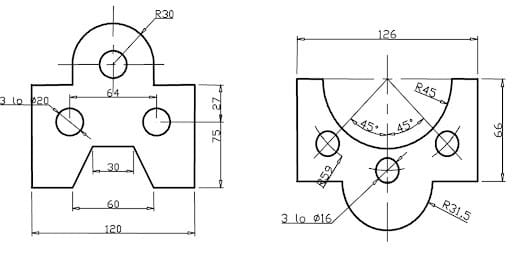 Các bạn luyện tập thêm theo hình bên dưới nhé, ở đây kích thước người ta cho là R-bán kính, khi nhập vào Fusion các bạn cần phải nhập Diameter = R x 2. Ví dụ R30 – bán kính bằng 30mm thì khi nhập vào phần mềm, các bạn phải nhập 60mm (30×2).