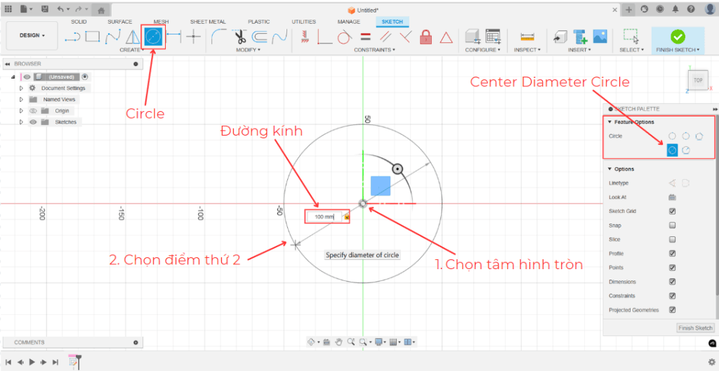 Hình 7: Lệnh vẽ hình tròn với đường kính từ tâm