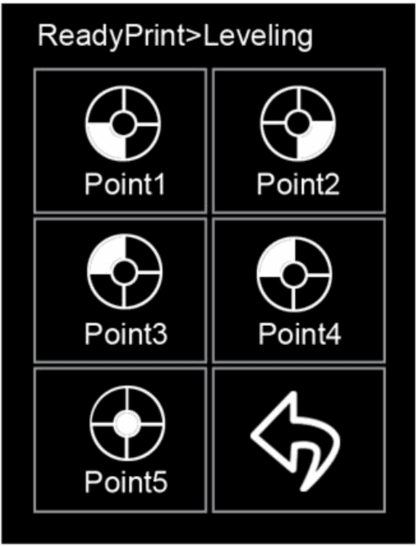 Việc cân chỉnh bàn in của máy Kingroon KP3S cũng tương tự như máy Ender3. Chỉ khác là trong máy Kingroon KP3S, các điểm cân bàn được lập trình sẵn (Ender3 thì phải di chuyển bằng tay). Bạn chỉ cần vào “Leveling” à click vào vị trí mong muốn là máy sẽ tự động chạy đến đó.