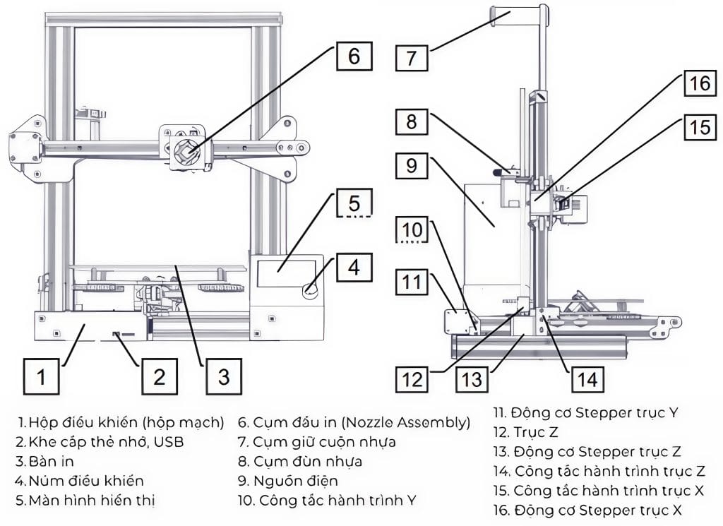 Hình 1: Cấu tạo máy in 3D Ender 3