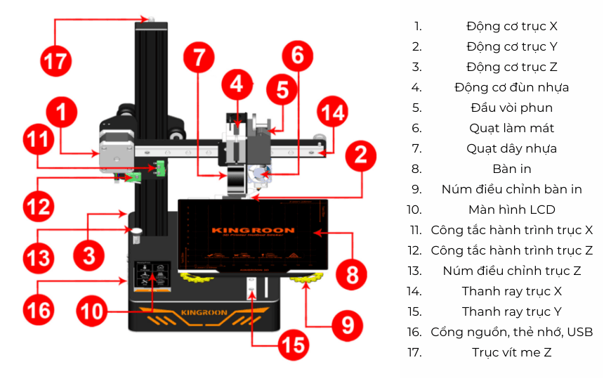 Hình 9: Cấu tạo của máy in 3D Kingroon KP3S