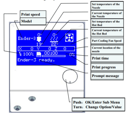 Hình 2: màn hình hiển thị của máy in Ender 3